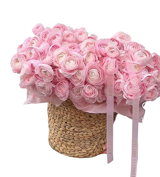 Bu sepet, hem dekorasyonda fark yaratmak isteyenler için hem de anlamlı bir hediye arayanlar için ideal. Ranunculus çiçeği (“düğün çiçeği” olarak da bilinir) uzun ömürlü yapısı ve katmanlı görüntüsüyle özel günlerin vazgeçilmezi olarak öne çıkar.