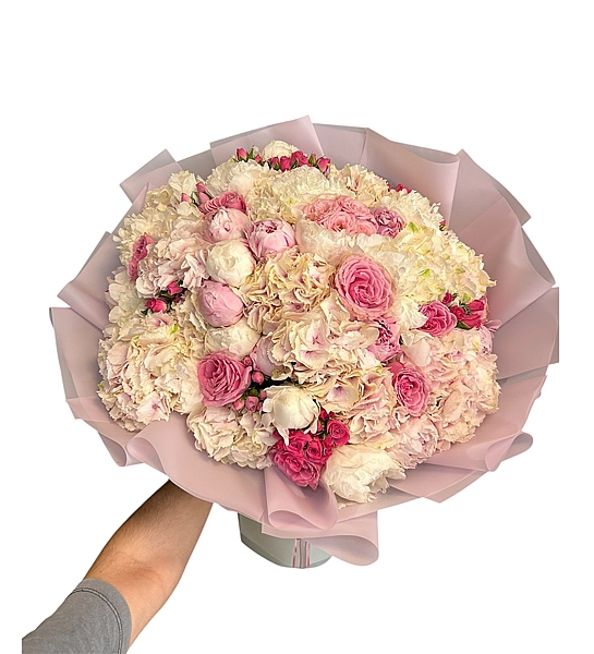 – Buket, farklı tonlarda pembe ve beyaz çiçeklerin dengeli uyumu sayesinde romantik ve sofistike bir atmosfer yaratır.